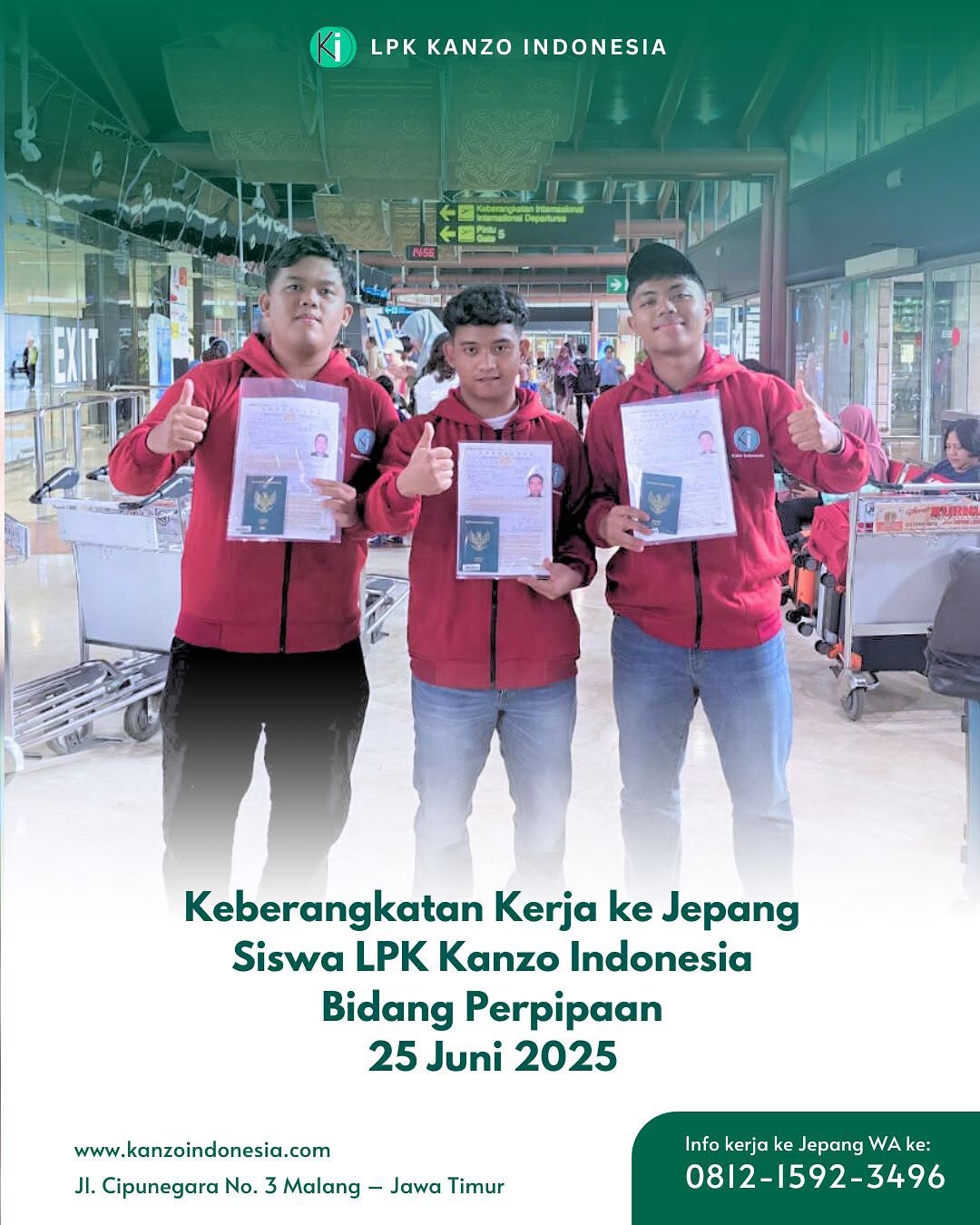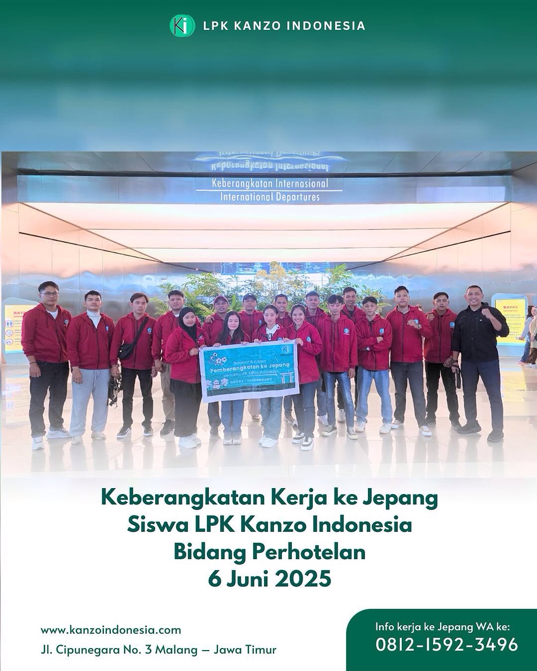 Keberangkatan peserta LPK Kanzo Indonesia ke berbagai perusahaan di Jepang.
